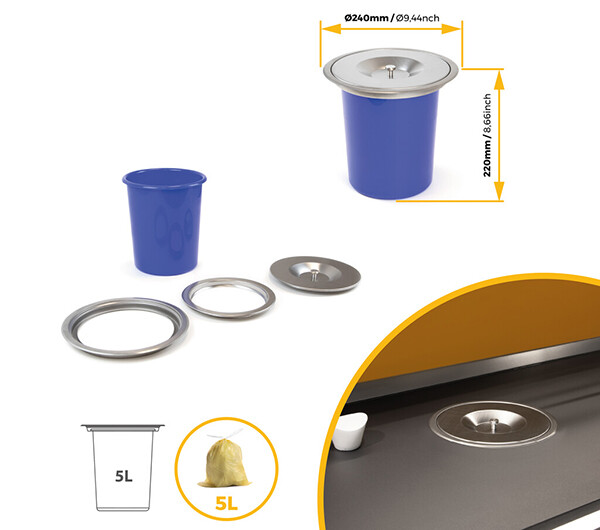| īpaša cena 28-E8199665 | Galda virsmā iebūvējama atkritumu tvertne | Gab. | nerūsējoša tērauda | 5 | 220 | 200 | 33.16 |