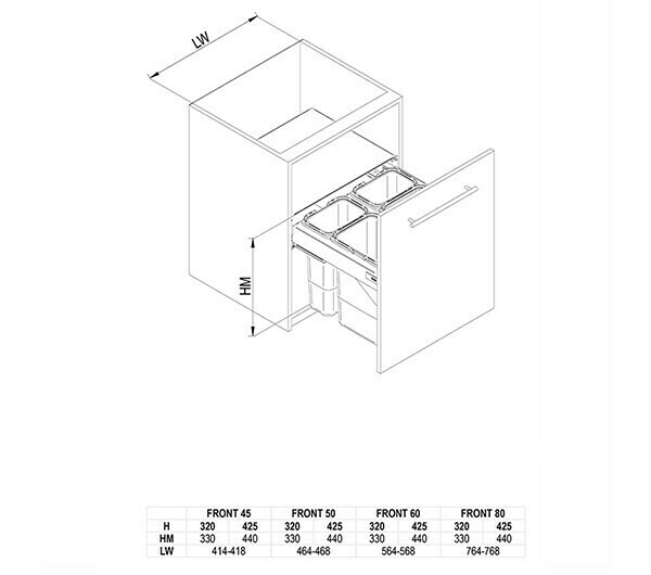 | jaunums 28-WE28403401924 | Atkritumu tvertne SEGREGO 450mm ar fasādes stiprinājumiem un bremzi | Komplekts | antracīta | 450 | 2x15 | 320 | 480 | 111.30 |